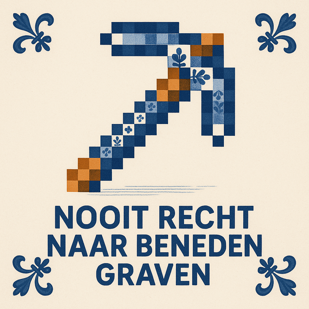 Minecraft – Grabe niemals gerade nach unten – Delfter Blaue Fliese mit Humor