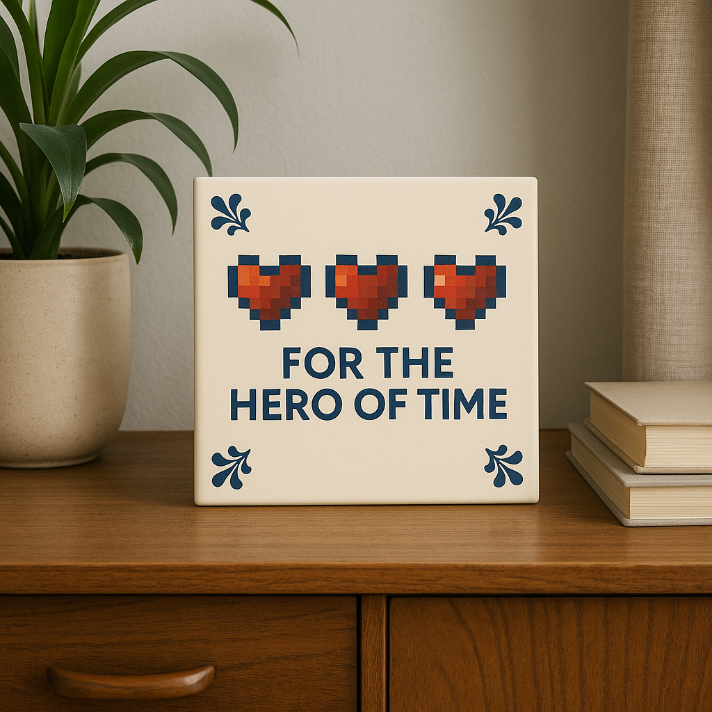 Zelda – Für den Helden der Zeit – Delfter Blaue Kachel mit Humor